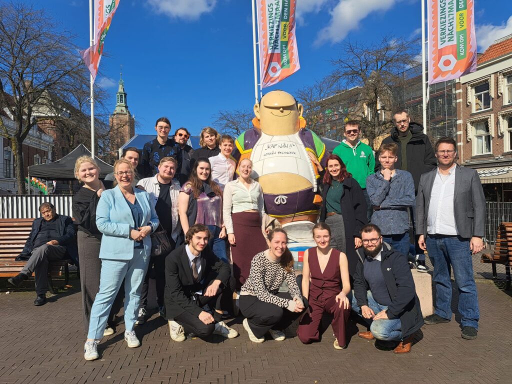 Op zondagochtend gooiden we het roer compleet om. De trainingspakken maakten plaats voor jurkjes, blouses en dassen: het was tijd voor de Hagenaren-zondag! In stijl maakten we een luxe stadswandeling door het centrum van Den Haag. Natuurlijk mocht een groepsfoto met Haagse Harry niet ontbreken om het weekend feestelijk af te sluiten.